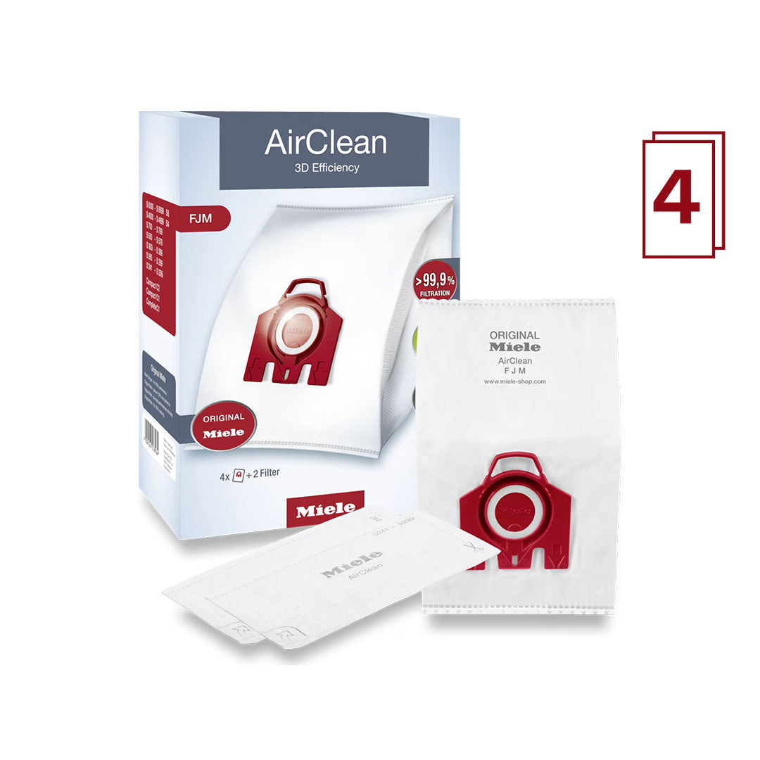 The Miele AirClean filter system, consisting of the original Miele FilterBag, the motor protection filter, and one of the original Miele exhaust filters, ensures maximum hygiene. The amount of fine dust in the room air is significantly reduced: The interaction of all components guarantees a filtration of more than 99.9% of fine dust1.